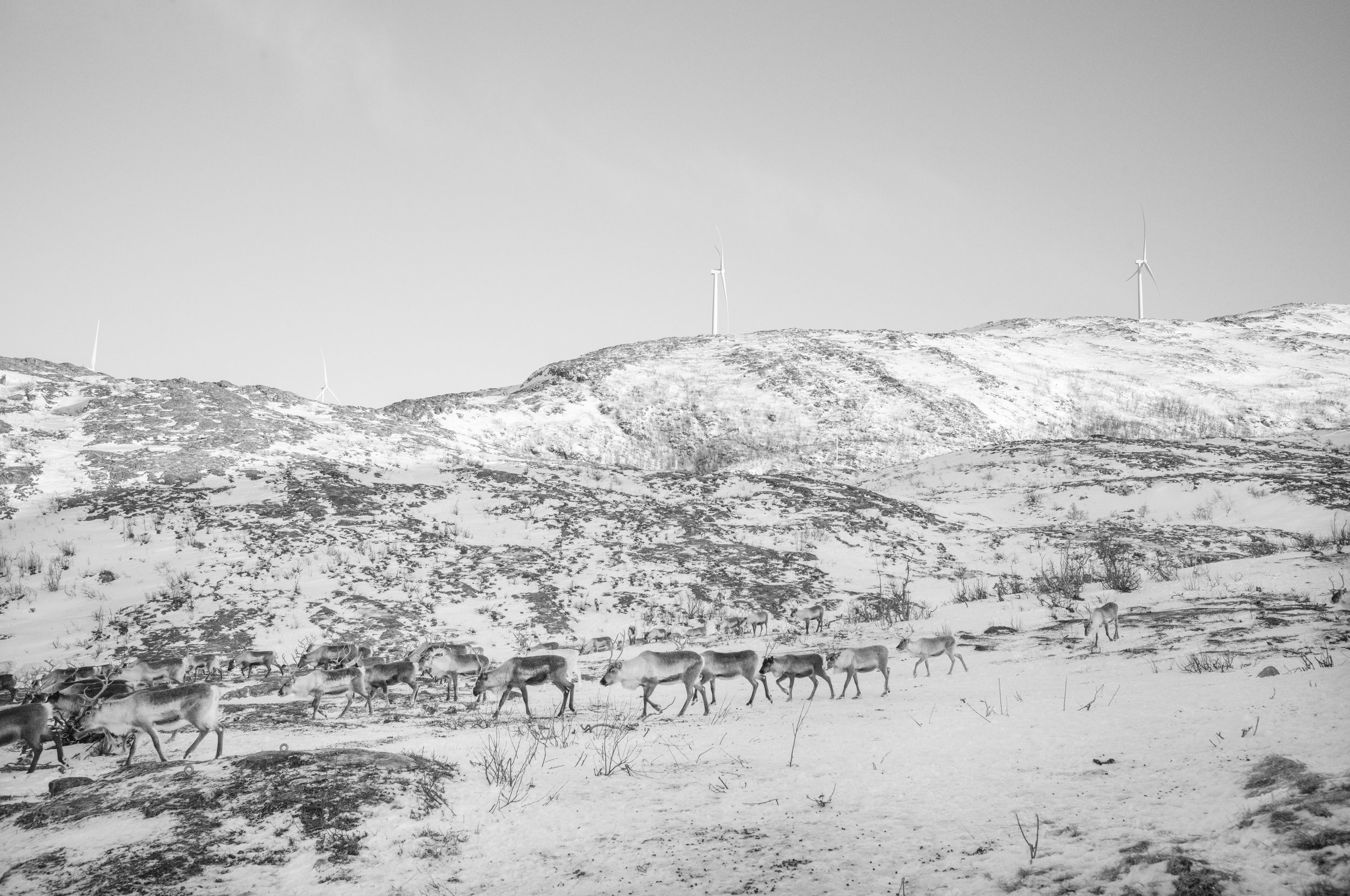 Norway: Wind turbines and transmission lines rise across subarctic plateaus, cutting through reindeer grazing grounds and reshaping landscapes long used for herding.